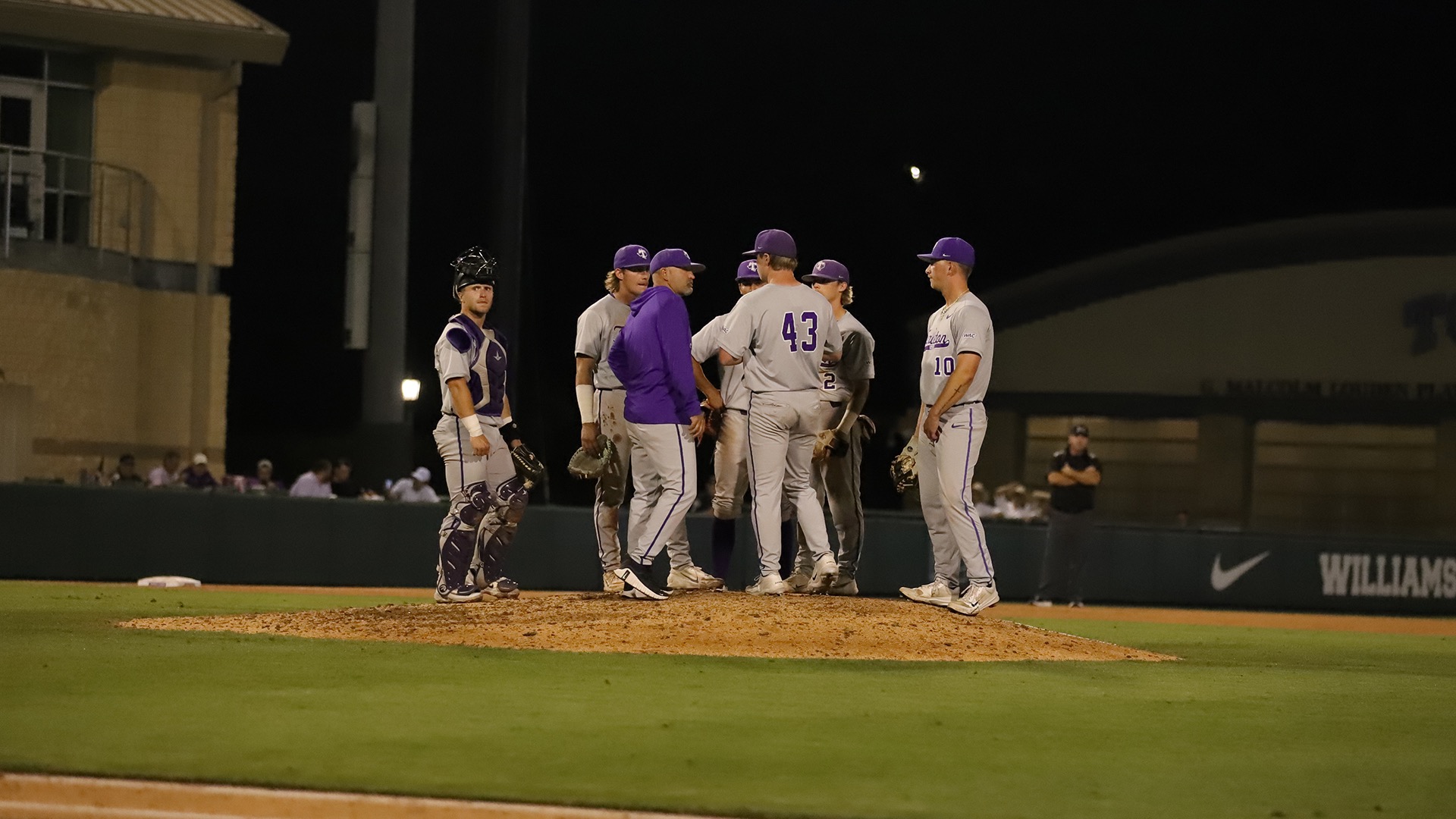 Piercen McElyea played a big part in the win, striking out a season-high 10 in 5.0 innings of work, walking none. McElyea threw a first pitch strike to 18 of 23 batters he faced. In the 2024 season, the Purple and White will face the Bears in Waco on May 7, and the A&M Aggies in College Station, Texas, on April 30.Â